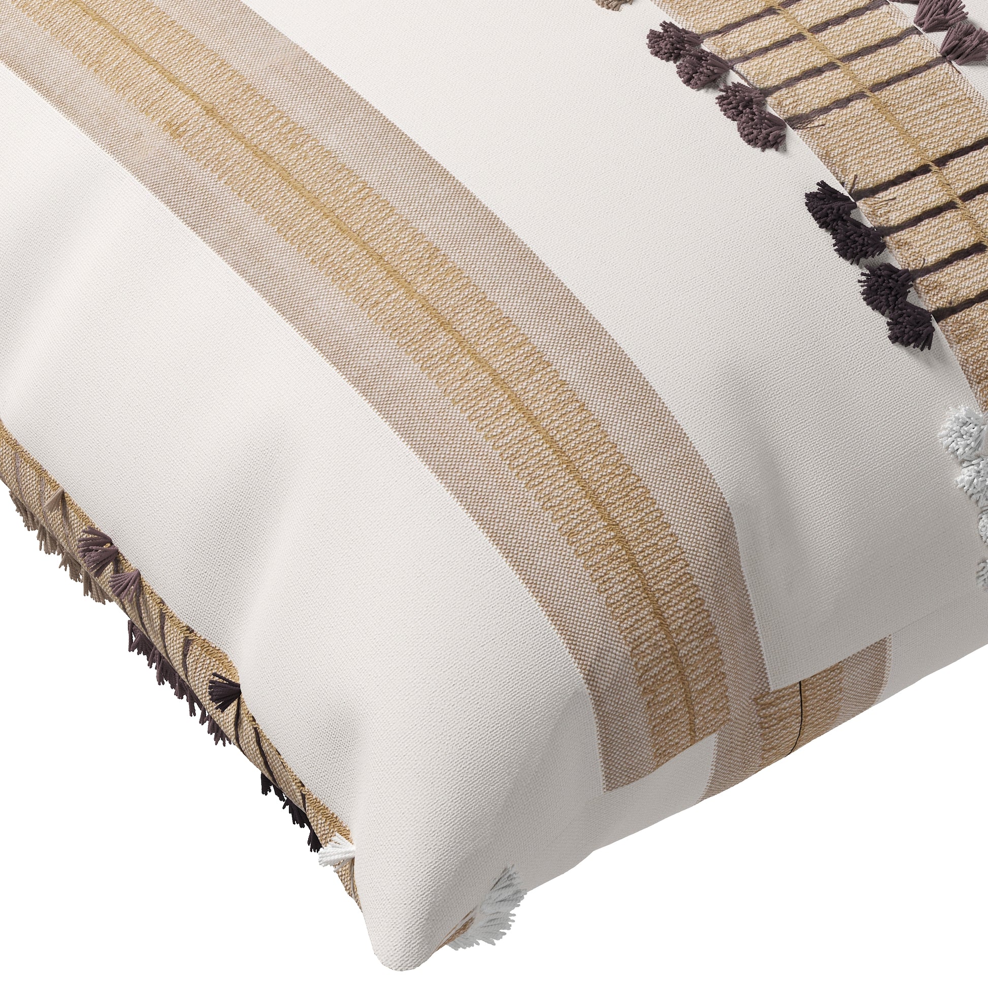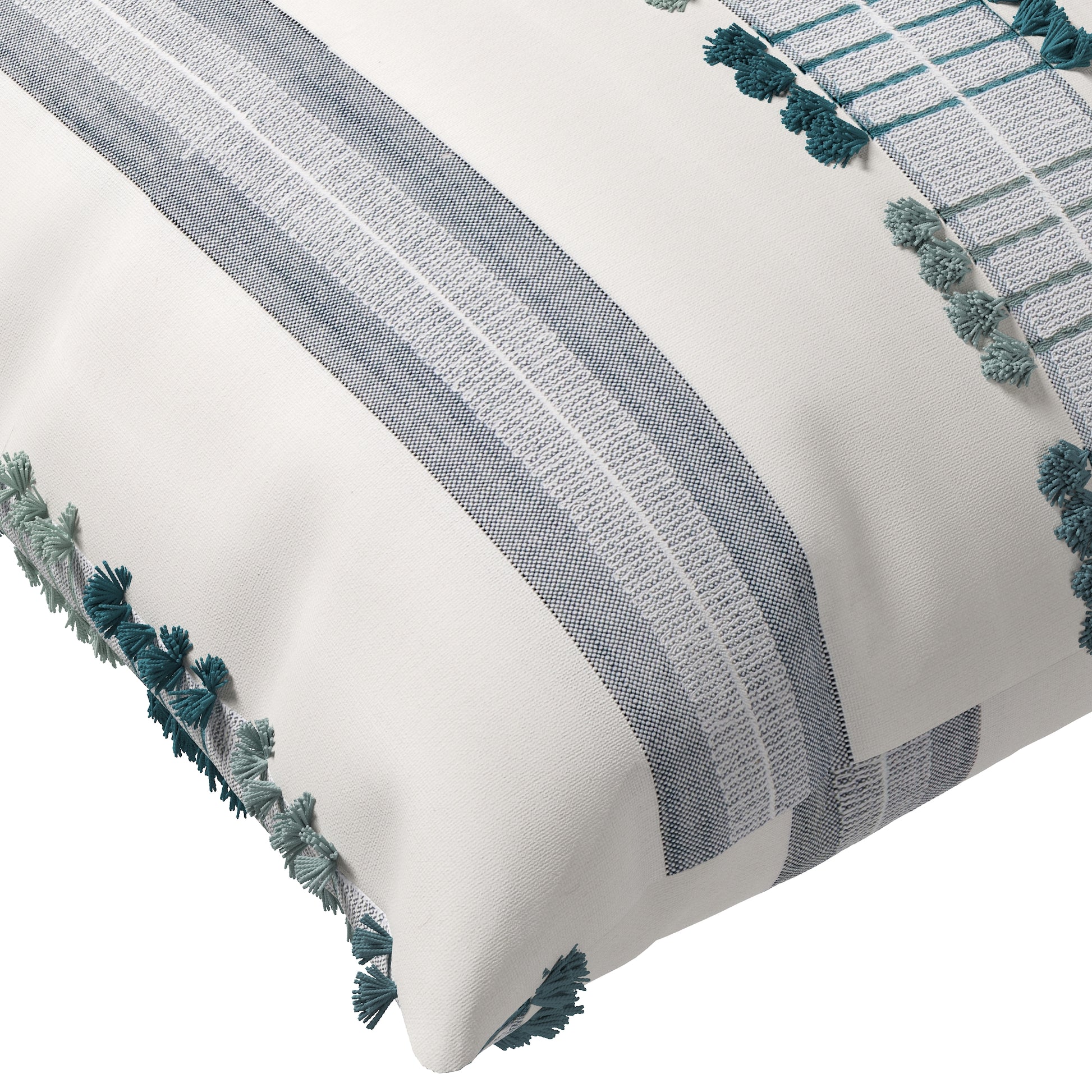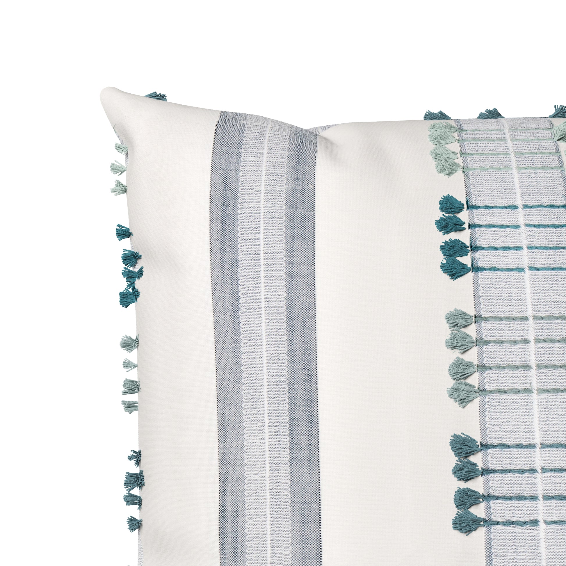 Soft, textural, and effortlessly elegant—the Kondo Throw Pillow Cover brings subtle pattern and dimension to your space. Featuring finely embroidered stripes and tufted thread work, it blends cozy texture with modern simplicity. Available in three versatile hues: peony, a romantic mix of blush and berry for a warm, feminine touch; golden, a blend of soft neutrals and sandy tones for a grounded, natural look; and seaglass, a refreshing mix of teals and misty blues that echo coastal calm. Whether layered on a bed or styled on a favorite chair, Kondo adds a relaxed yet refined accent that’s easy to mix and match.